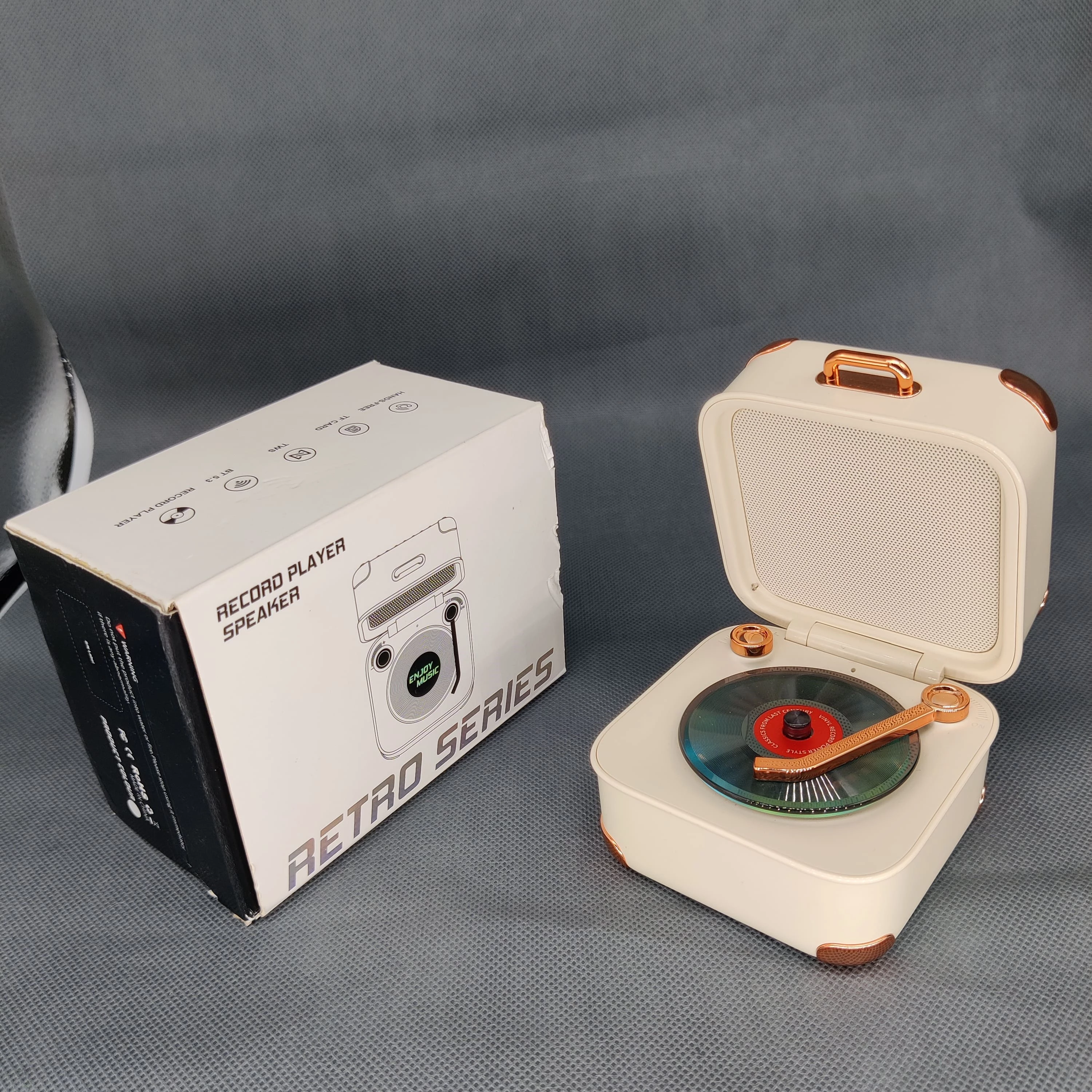 Retro Series Record Player Bluetooth Speaker – a vintage-inspired portable audio device combining nostalgia with modern technology. Featuring vibrant LED lighting and powerful 5W sound, this compact speaker delivers immersive audio and aesthetic appeal perfect for any setting.