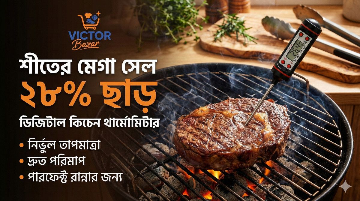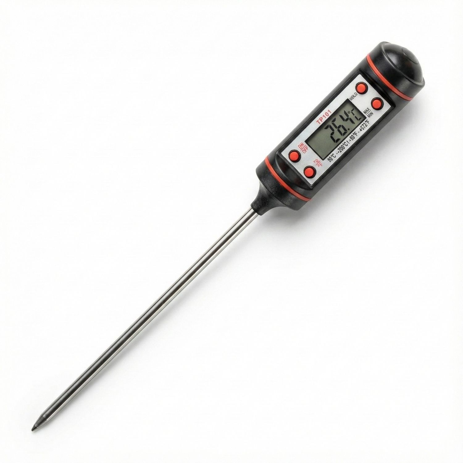 Ensure your meals are cooked to perfection every time with the TP101 Digital Kitchen Thermometer from Victor Bazar. Whether you are grilling steaks, baking cakes, or warming milk for a baby, this thermometer gives you an instant, accurate reading in seconds. Featuring a long stainless steel probe to keep your hands safe from heat and a clear LCD display, it is the ultimate tool for any home chef. Switch easily between Celsius and Fahrenheit and use the "Hold" function to freeze the temperature reading for easy viewing.