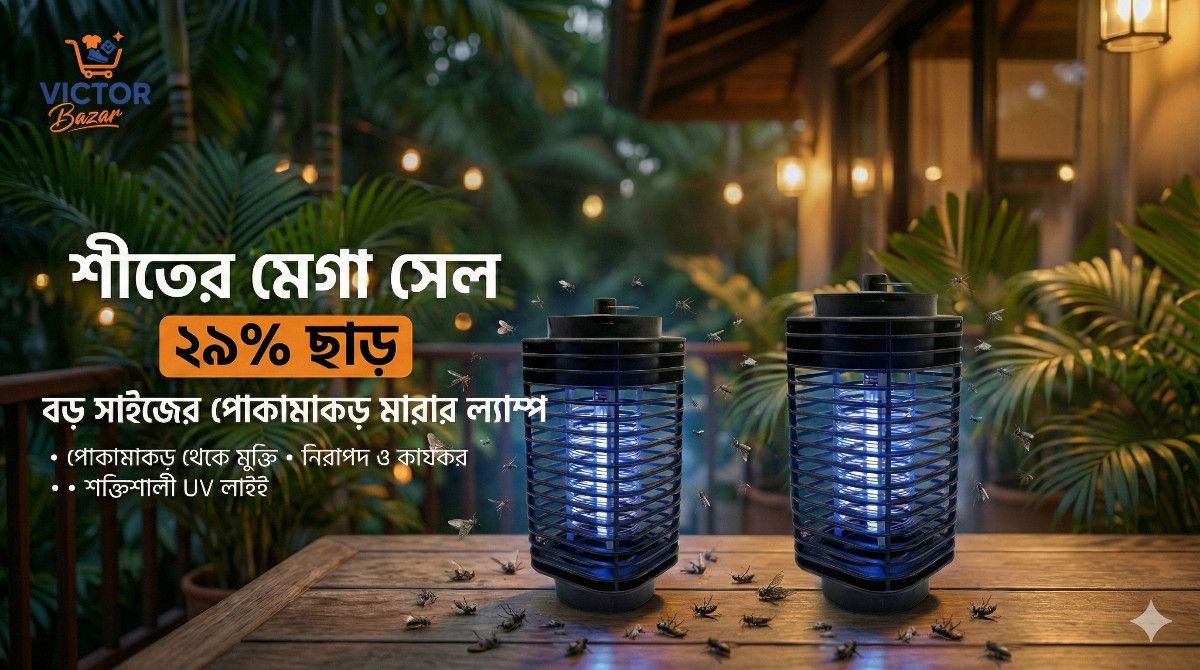 Say goodbye to annoying mosquitoes and flying insects with the Victor Bazar Large Size Insect Killer Lamp. This high-performance device uses advanced UV light technology to attract bugs and a powerful electric grid to eliminate them instantly. Designed for safety, it features a protective outer mesh, making it safe for homes with children and pets. No chemicals, no fumes, and no noise—just a peaceful, bug-free environment. Perfect for bedrooms, living rooms, and offices.