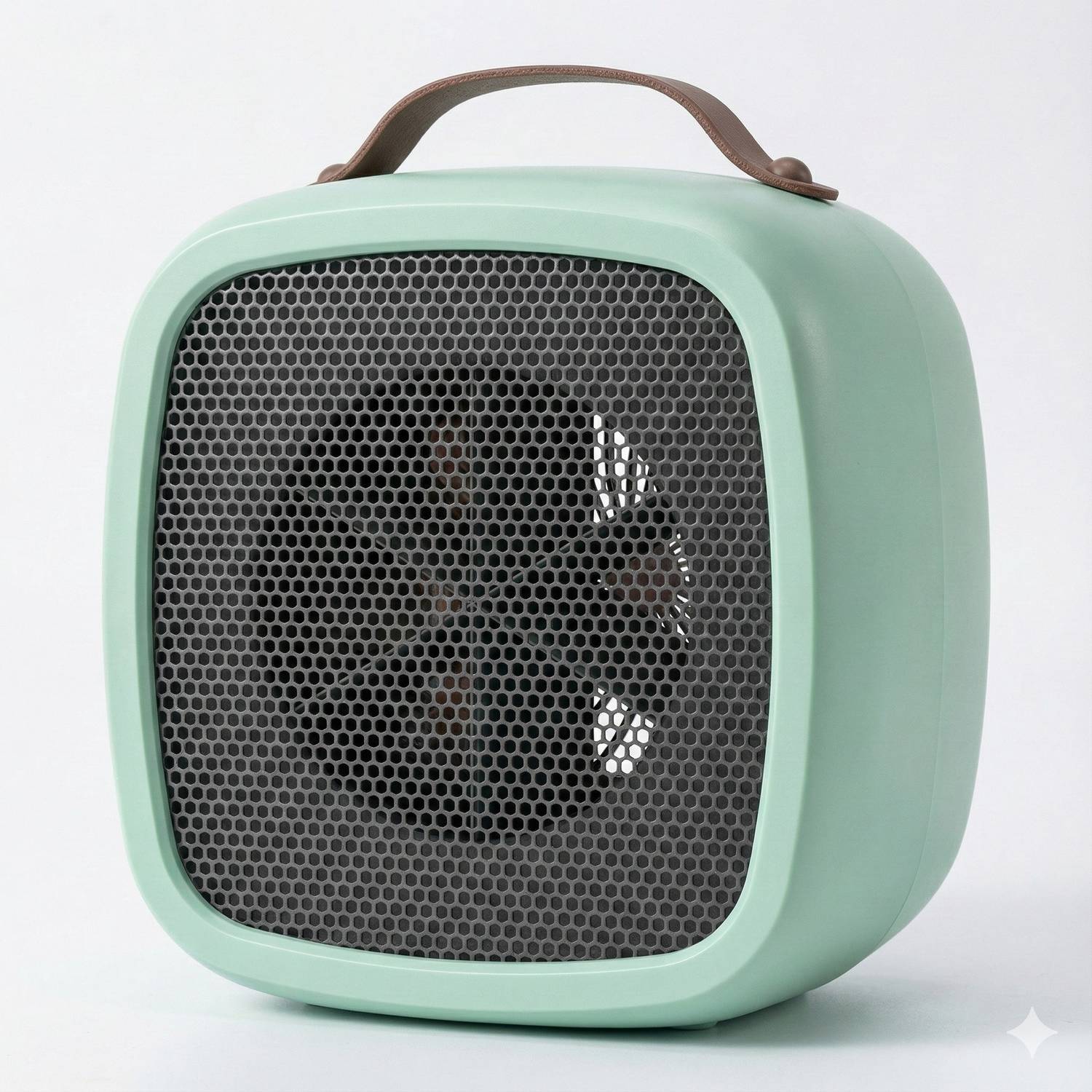 Stay cozy and stylish with this Retro Portable Desktop Heater. Designed with a charming vintage aesthetic in a soft mint green finish, this compact heater is the perfect companion for your office desk, bedside table, or study area. It features advanced heating technology to deliver instant warmth without the noise, ensuring a comfortable environment for work or relaxation. Lightweight and equipped with a convenient carrying handle, you can easily take the warmth with you wherever you go.